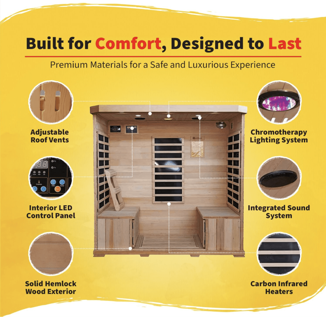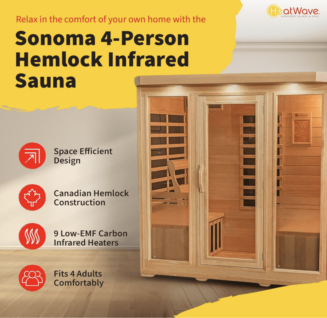 Sonoma 4-Person Hemlock Infrared Sauna with 9 Carbon Heaters